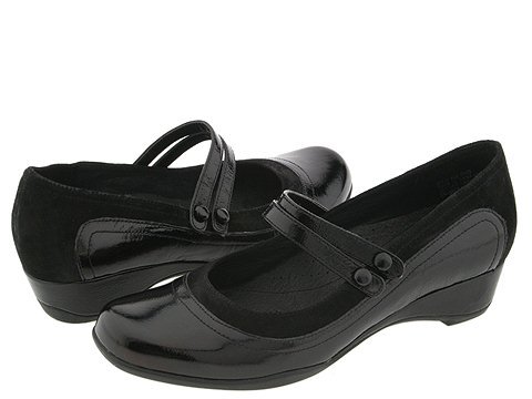 Clarks Artisan Malta is a beautiful dress shoe. It has a rounded top style, a 1 inch leather wrapped heel, and a double strap across the foot. The shoe has a patent trim uppers in suede with. These shoes have an incredibly cushioned for all day comfort and a flexible outsole with a non-sliding foot bed.
