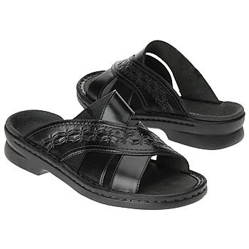 Clarks Cherlylyn is an adorable slide sandal. It has a smooth leather upper with a tribal pattern design. The sandal has an open top with a criss cross upper. It has a 1 1 / 2 inch wedge heel and a textured rubber sole. The footbed has some cushioning.